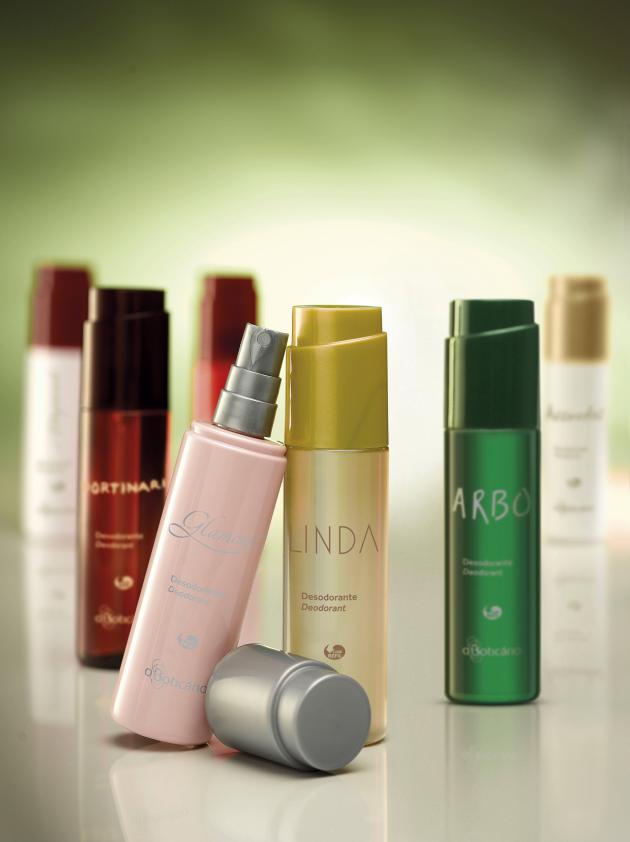 Em embalagens práticas, marcas consagradas das fragrâncias masculinas e femininas –Accordes, Glamour, Capricho, Linda, Portinari, Myriad e Arbo – prometem repetir o sucesso das colônias completando o ritual de perfumação do consumidor. Os desodorantes em spray, além de proteger, perfumar e inibir os odores da transpiração são uma excelente opção para quem quer experimentar novas fragrâncias com um pequeno investimento, já que são encontrados em valores a partir de R$ 18,99 e ainda contam com refis vendidos à R$ 14,99 cada.