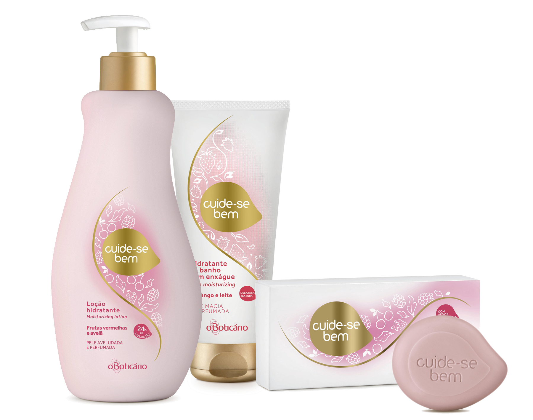 As loções de Cuide-se Bem foram reformuladas para entregar 24h de hidratação. Possuem uma textura mais leve e 24 horas de hidratação. As novas fórmulas possuem textura cremosa, fácil de espalhar e rápida absorção. A presença de nutrientes e vitaminas nutrem a pele proporcionando um toque aveludado e tudo isso acompanhado por deliciosas fragrâncias.