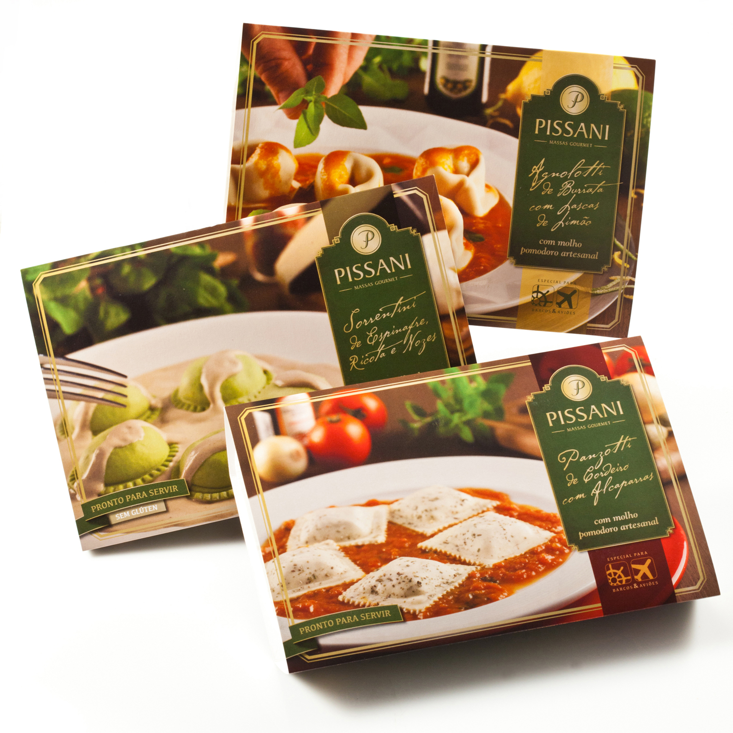 Os sabores, formas, cores e texturas dos raviólis da marca transmitem sensações que estão em perfeita consonância com o olfato, paladar, visão, audição e o tato. O artesão de massas Carlos Pissani, destaca exemplos como os raviólis marmorizados, que usam o vermelho ou o marrom café para estimular os sentidos, em especial os óticos. Igualmente emocionante, a pequena trouxinha inova no formato e no blend de farinhas, utilizando amêndoas.