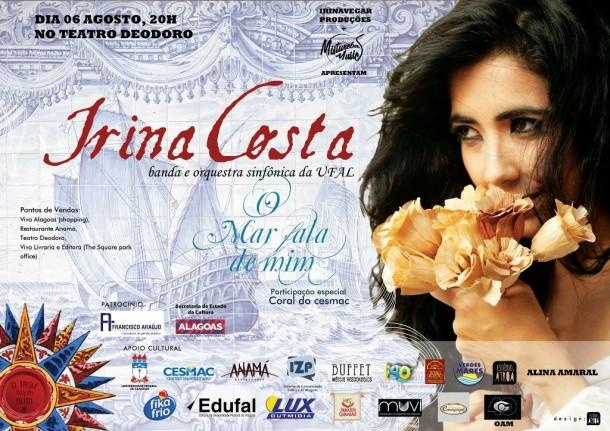Com o concerto ‘O Mar Fala de Mim’, Irina Costa propõe-se cantar o mar. Não apenas o “mar português”, que o poeta Fernando Pessoa exaltou, mas o mar travessia que a trouxe de outro continente e a fez assentar a sua vida num chão brasileiro/nordestino, irrigado pelo mar que Dorival Caymmi e tantas outras vozes cantaram e cantam ainda, suas imagens encharcadas de alegrias e tristezas, que fazem do partir um eterno regressar. “É um show que conta um pouco de minha história, que sempre esteve ligada ao mar”, conta Irina. “Nasci em Angola e, em 1975, fugindo da guerra, atravessei o oceano com minha família para vir buscar morada em Alagoas. O mar fala de mim, fala de ti, fala de nós”, diz.