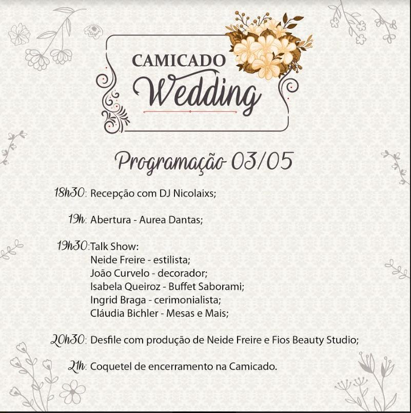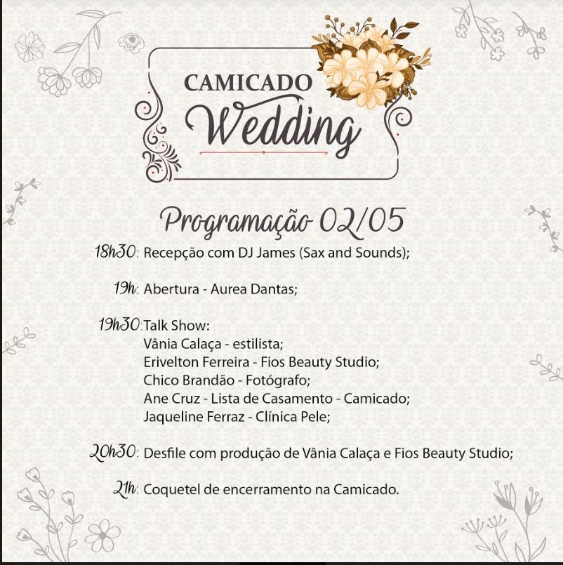 Confira a programação do Camicado Wedding: