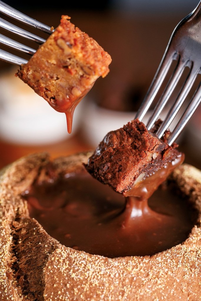 O Outback Steakhouse traz pela primeira vez para seu cardápio dois fondues acompanhados dos sabores mais amados da marca. A novidade chega em duas versões, doce e salgada, com muito bold flavour e o diferencial é que, ao invés da tradicional panela do fondue, o mix de queijos e a calda de chocolate serão servidos no icônico pão australiano do restaurante, desta vez em formato de bowl. A opção salgada, chamada Cheese Fondue (R$ 75) conta com uma fonduta de mix de queijos com um toque de molho ranch servida com filet mignon em tiras, cubos de frango grelhados, camarões empanados ao estilo Outback, fritas e os Royal Bites (cubos de Ribs empanados no mix de temperos da cebola Bloomin’ Onion). Já no Chocolate Fondue, versão doce (R$ 60), o pão australiano vem recheado de calda de chocolate original da sobremesa Chocolate Thunder From Down Under bem quentinha e servida com os tradicionais brownies de chocolate e de doce de leite, morangos, bananas e marshmallows tostados. O cliente pode pedir o combo com os dois sabores pelo preço especial de R$ 120. As novidades chegam ao cardápio nesta segunda-feira (03/06) e ficam disponíveis por tempo limitado em todas as unidades do Outback do Brasil.