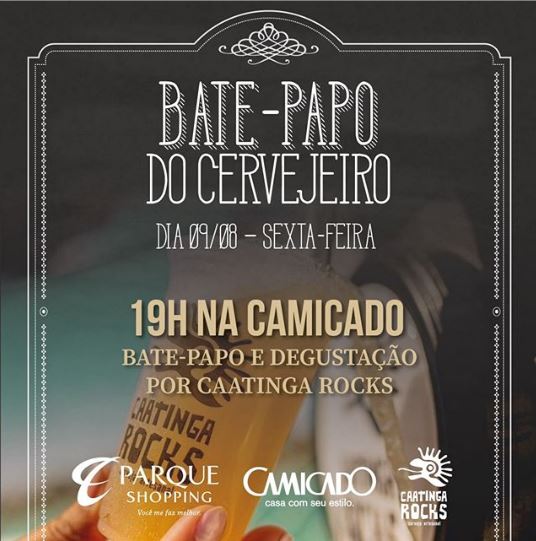 O “Papo de Cerveja” será uma roda de conversa ao comando do Rafael Leal, proprietário da Caatinga Rocks, marca alagoana de cervejas artesanais, sobre o universo e os tipos de cerva, com direito a degustação. Com entrada gratuita, o evento será nesta sexta (9), a partir das 19h, na Camicado (piso L2). Completando a noite, às 20h, a banda Expresso 59 se apresenta na Praça de Alimentação (piso L3).